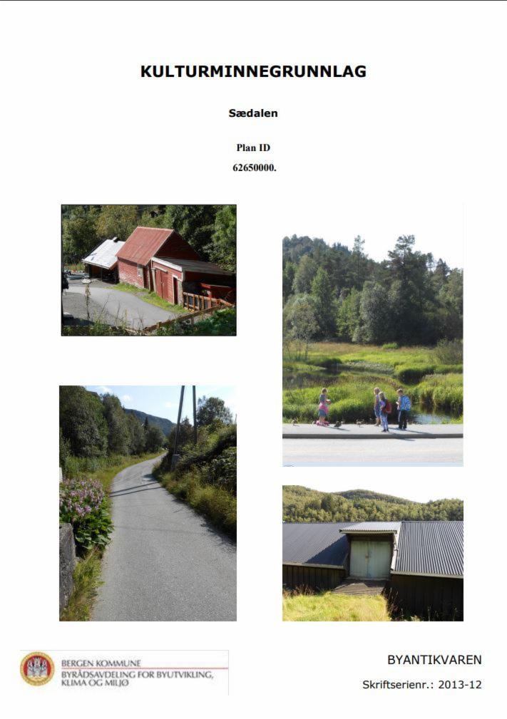 Brukene som har vært i planen er stort sett oppløst og ikke lenger i drift. Det står likevel igjen en del landbruksbygninger som løer som er en viktig del av identiteten til området. Den første boligbyggingen i området begynte sent på 1950-tallet. Det er ingen spesielle bygninger som stikker seg ut. Det er likevel viktig at de to områdene hvor denne utbyggingen ble gjennomført bevarer sin karakter i framtiden. Det er også viktig at man i det videre beholder det grønne draget opp dalen som er unikt da det er en lang sammenhengende grøntstruktur som går opp til fjellet. Tunene langs det eldre veifaret «Indre Sædal» gir en klar og historiefortellende sammenheng som bør bevares i planen.