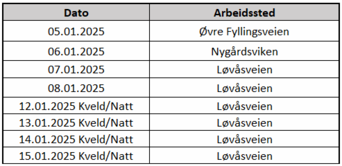I uke 2 og 3 skal det fornyes følgende steder: