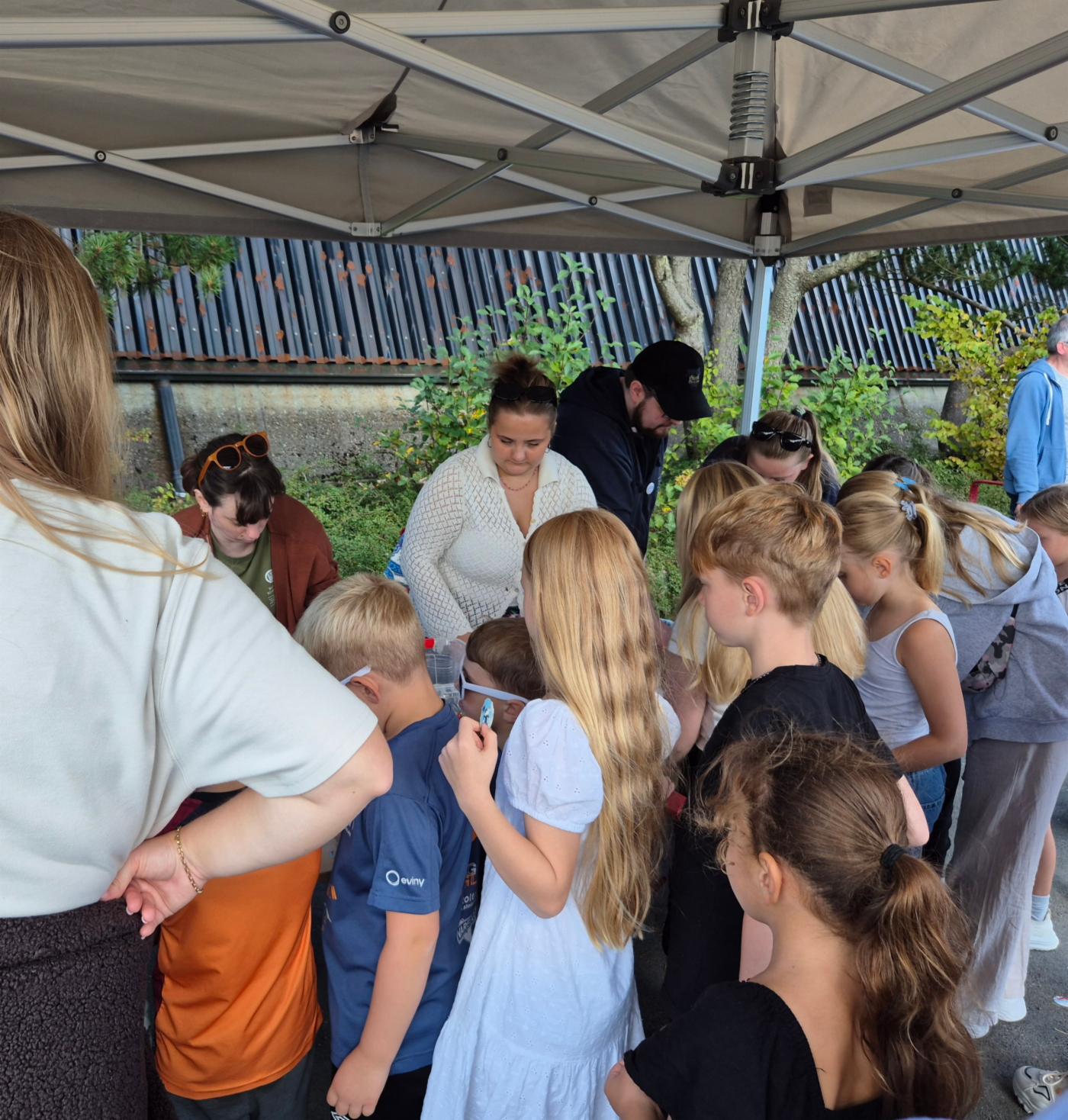 BUA fikk det travelt med alle som ville låne sparkesykler, og Olsvik juniorklubb hadde lange køer av barn som ville lage morsomme buttons.