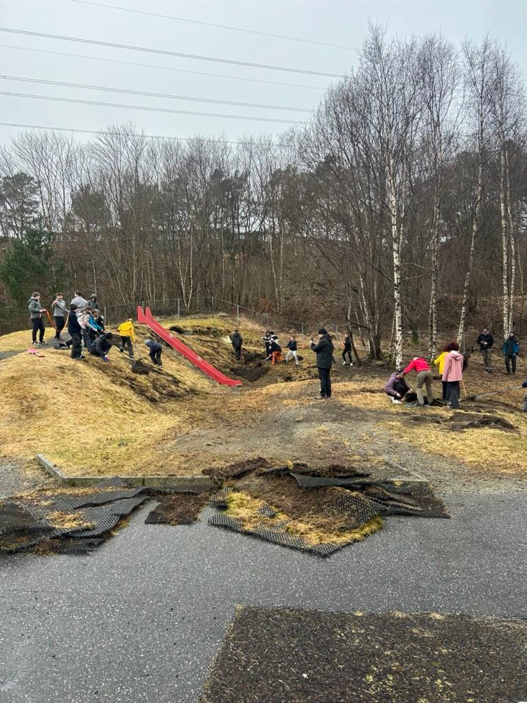 Med seg på laget har han fem arkitekter fra FormFlora som bidrar gratis på dugnad en gang i uken. De hjelper elevene med å skape et spennende uteområde for dyrking og læring. Skolehagen skal etter hvert også bli en møteplass for nærområdet.