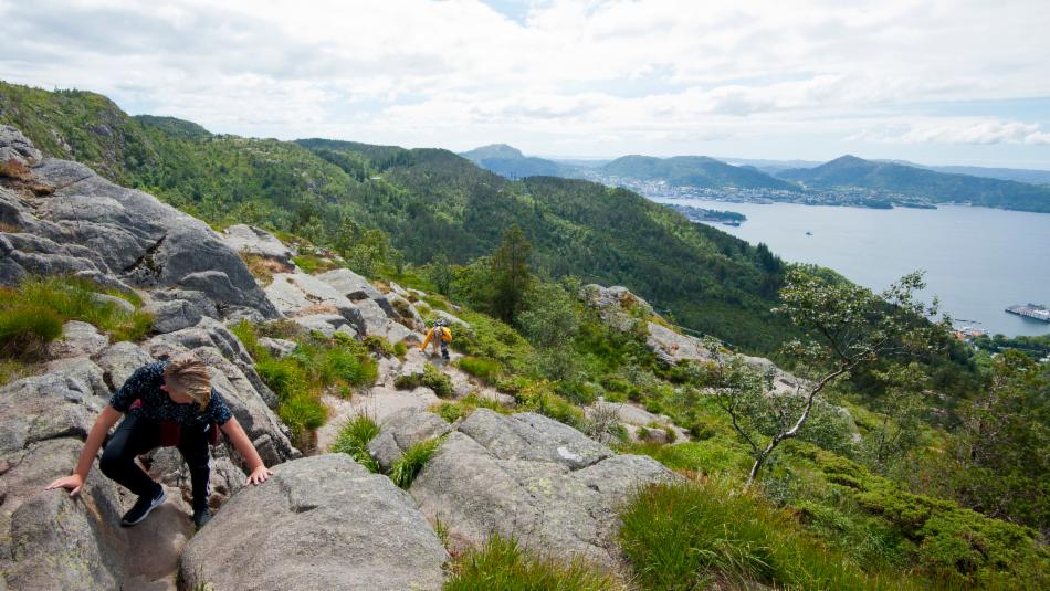 Etter Rundemanen går du inn på turvei igjen, og følger den behagelige nedstigningen til Fløyen, perfekt for slitne bein eller kranglete knær. Fra Fløyen kan du selvsagt gå ned, men det er grådig kjekt å ta Fløibanen og.
