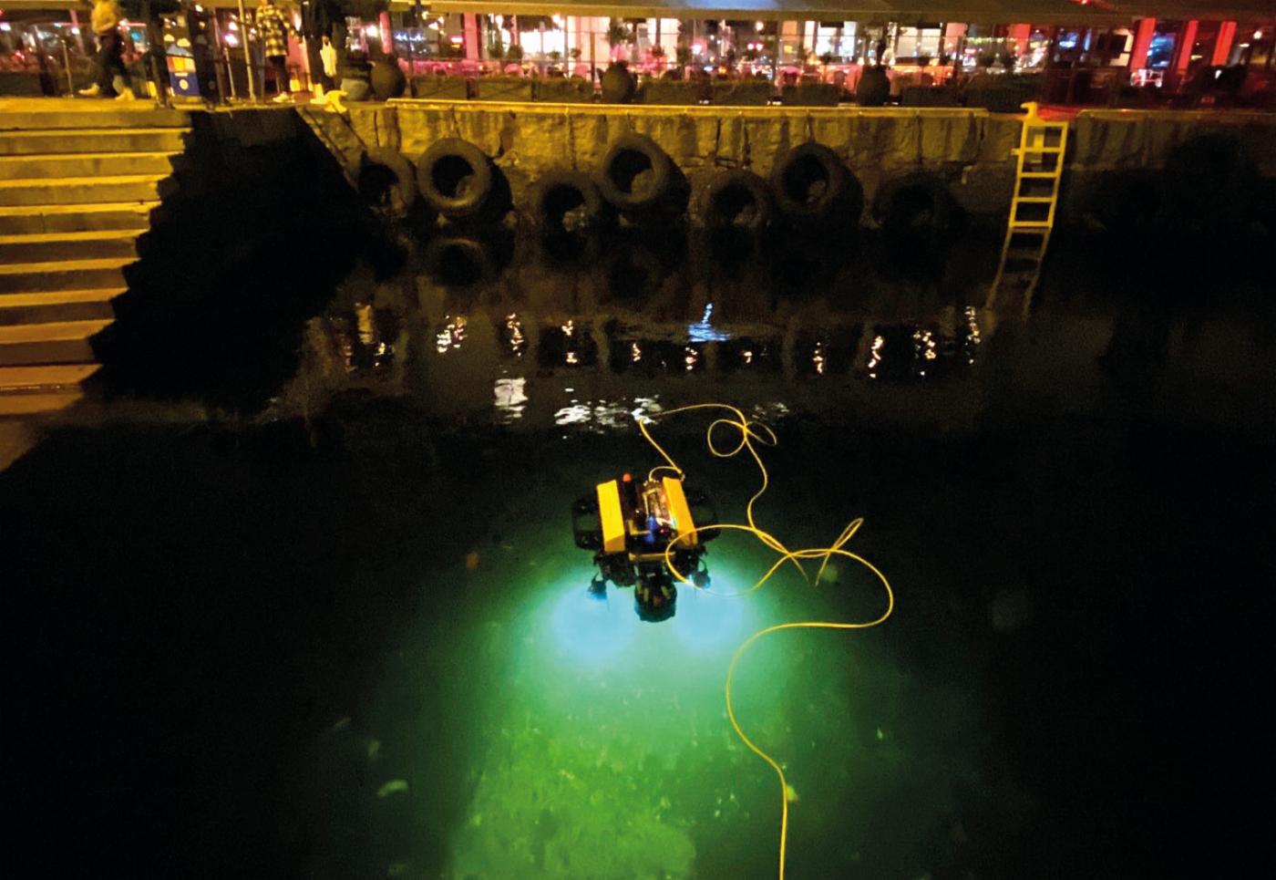 UNDERSØKELSER: Her undersøker en undervannsdrone Vågen i november i 2022. En slik drone ble også brukt til å kartlegge sjøbunnen i Store Lungegårdsvannet. Vi fikk ut et 3D-kart som viste hvor og hvor mye boss som lå på bunnen.