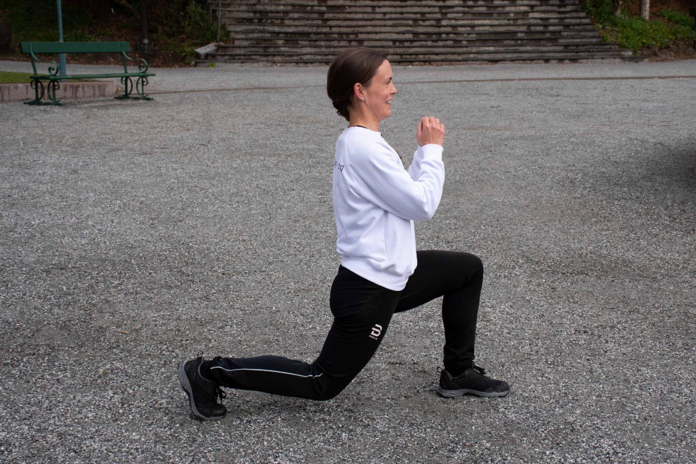 Når du gjør utfall, trener du alle musklene i underkroppen. Dette er også en glimrende balanseøvelse.
