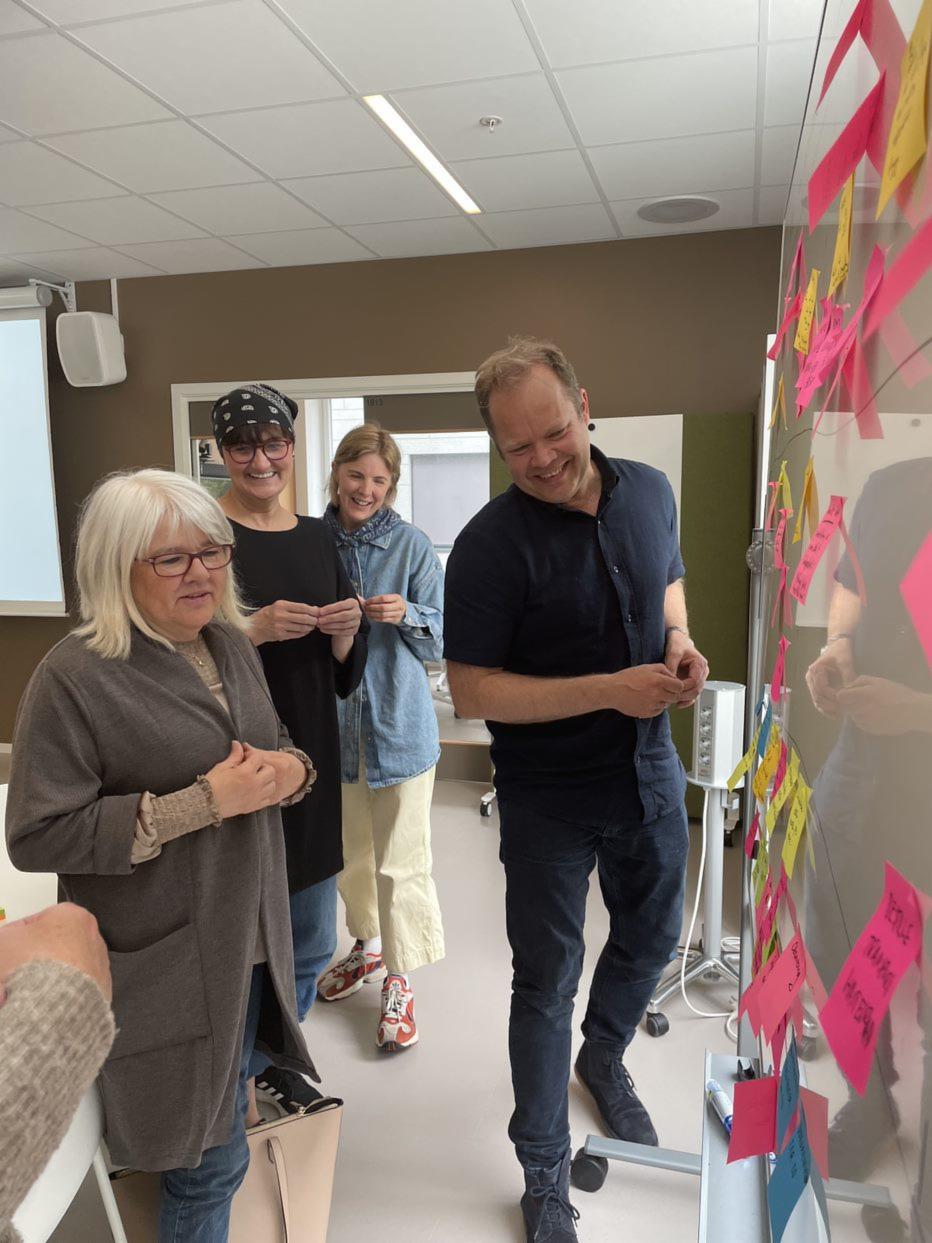 Vi valgte derfor å ha flere arbeidsverksteder, der vi samlet medarbeidere på tvers av faggrupper for å jobbe med komplekse utfordringer sammen. På arbeidsverkstedene har vi blant annet beskrevet pasientflyten ved legevakten, definert hva og hvor problemene er, og kommet med ideer til forbedringer. Vi har jobbet i grupper, brukt lapper og tavler, tegnet og prioritert – alt i korte økter sånn at vi holdt tempoet oppe. Slik fikk medarbeiderne selv bidra tett i utviklingsarbeidet, på en tidseffektiv måte.