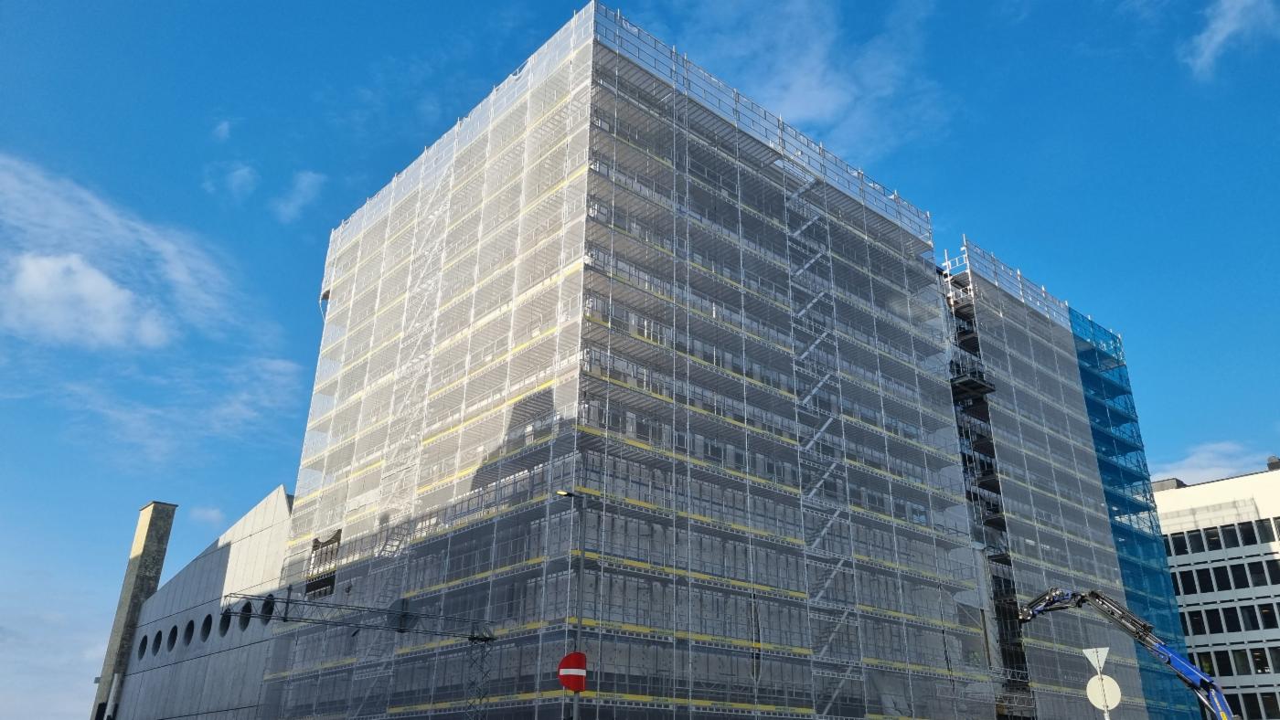 Prosjektet er godt i gang med gjenoppbyggingen av Sentralbadet. Det pågår både plasstøpte betongarbeider samt montering av stålkonstruksjoner og prefabrikkerte betongelementer. Det er forventet at bæresystemet for kontorpåbygget er på plass innen utgangen av 2024.