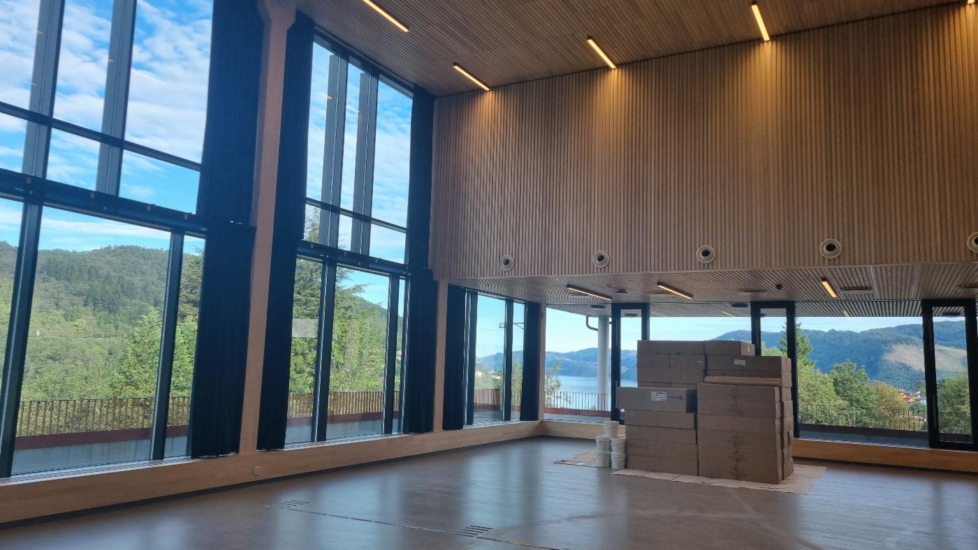 Bygget er delt i to innvendig med eit kommunikasjonsareal. Heimeområda til elevane ligg mot aust, mens alle spesialrom, bibliotek og stort formidlingsrom ligg mot vest.