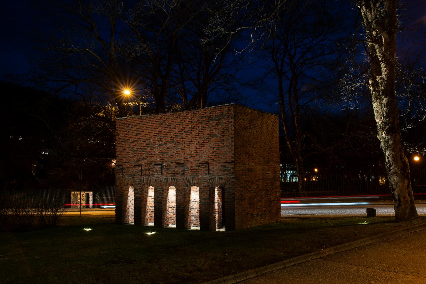 For å gi skulpturen den plass den fortjente, ble den flyttet fra utenfor Engen kino til Nonnestien. Jogger du forbi en solfylt morgen vil sola skinne gjennom glasset i midten. Skulpturen vil da ikke oppfattes som mørk stein, men som en port til lyset.