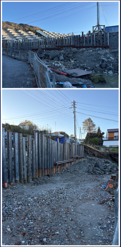 - Spuntvegg/rørvegg langs kanten av Naustvegen ved nr. 47 er etablert. Vi vil nå grave ut området til vi kommer til fjell.