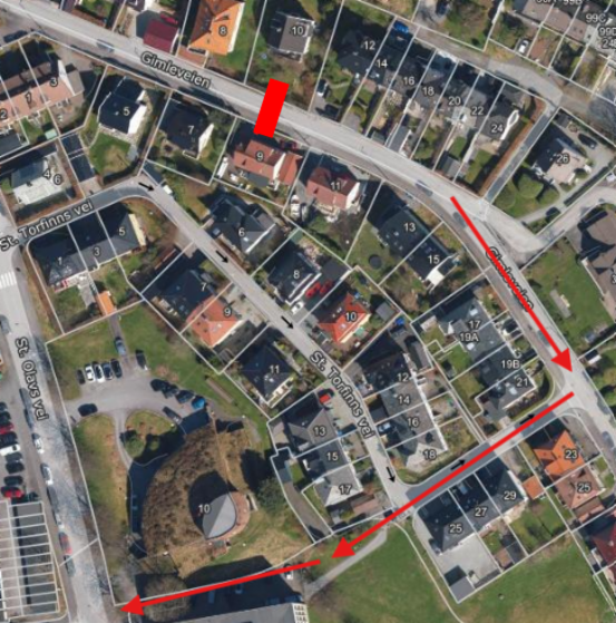 Tirsdag 7. og onsdag 8. april, uken etter påske, vil vi starte gravearbeider ved Gimleveien 9. Veien vil være stengt for gjennomkjøring disse dagene, og beboere nærmest gravepunktet må flytte bilene sine tirsdag morgen for å komme ut med bil.