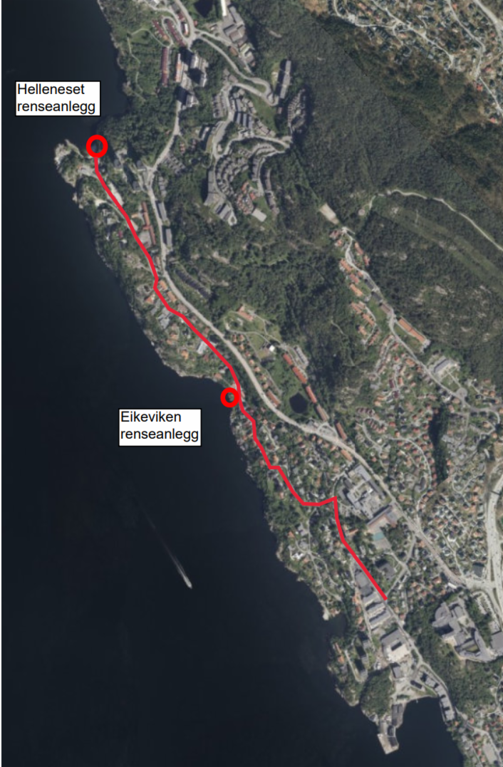 På Helleneset og i Eikeviken har Bergen Vann i dag to renseanlegg som renser avløp lokalt. Disse vil vi nå erstatte med to pumpestasjoner som skal transportere avløpet til Ytre Sandviken renseanlegg. Vi vil også separere* spillvann og overvann.
