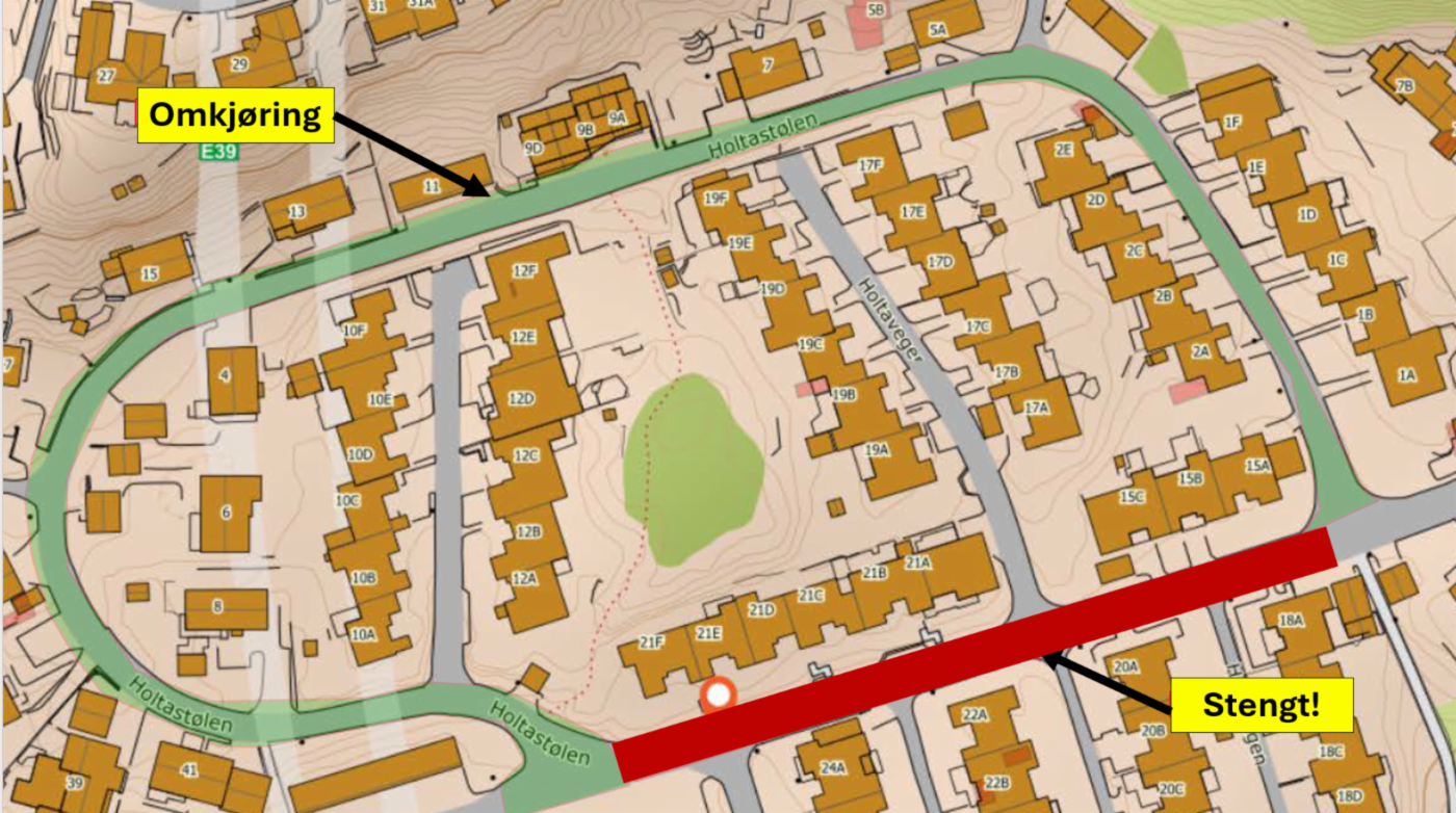 - Myke traffikanter må benytte seg av motsatt side i Folldalslia, langs hekken til Folldalslia 3.