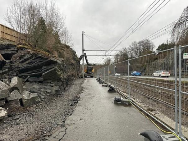 - Trasé mot Apeltun ryddes, og arbeider med skjæring, boring og sprengning i fjellet som ligger langs bybanetraseen er startet. Arbeidet vil totalt pågå i ca. fem uker, og vil etter planen foregå innenfor normal arbeidstid.