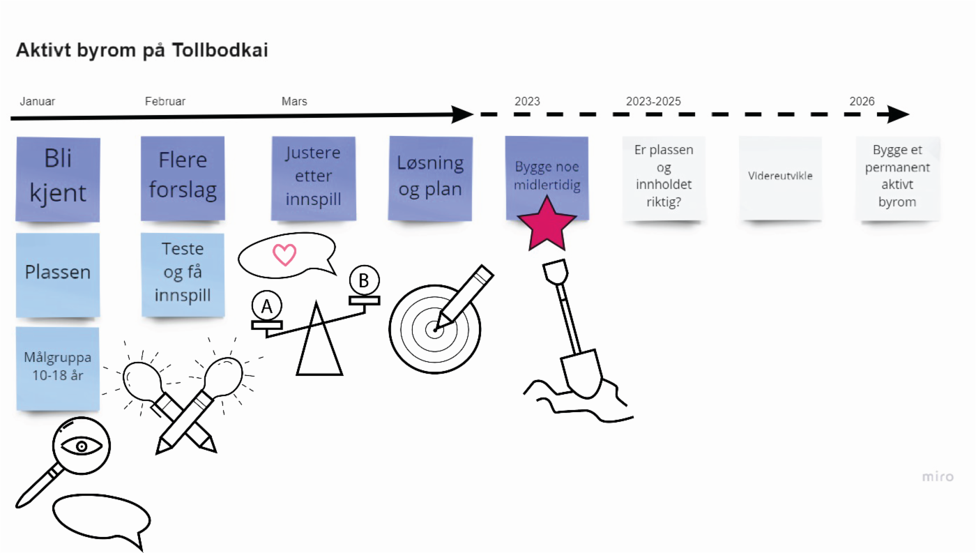 Tidslinjen fra planlegging til permanent anlegg