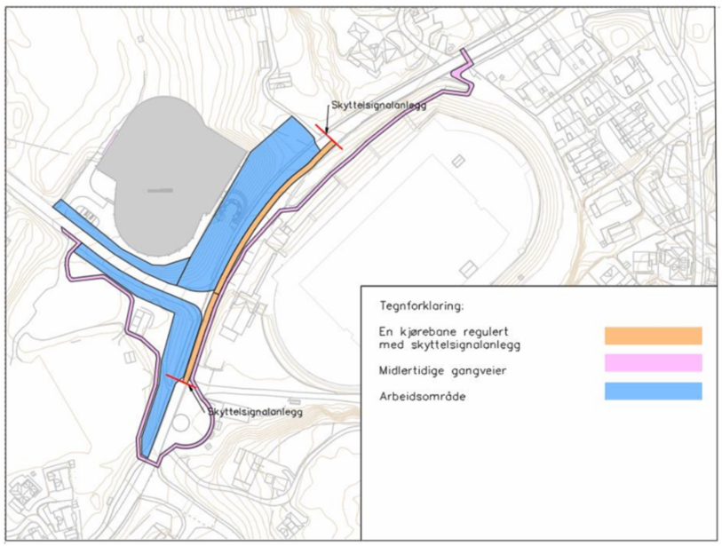 Midlertidige gangveier og lysregulering i Grimseidvegen