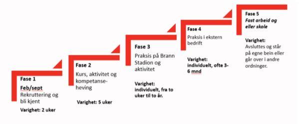 Fase tre, fire og fem er individuelt tilpasset og vil variere både i omfang og lengde. Vi jobber ofte med ulike problemstillinger parallelt. Stadion er en øvingsarena og vi ønsker å styrke hver enkelt, gjøre alle tryggere på seg selv og bidra til varig endring.