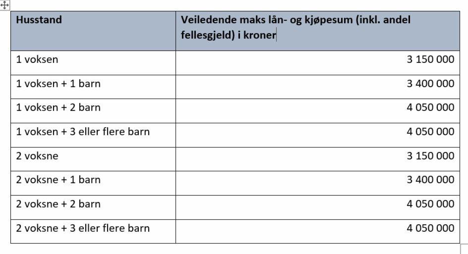 Bergen kommune har tak på hvor mye boligen kan være verdt og hvor mye du kan låne, avhengig av hvor stor familien er.