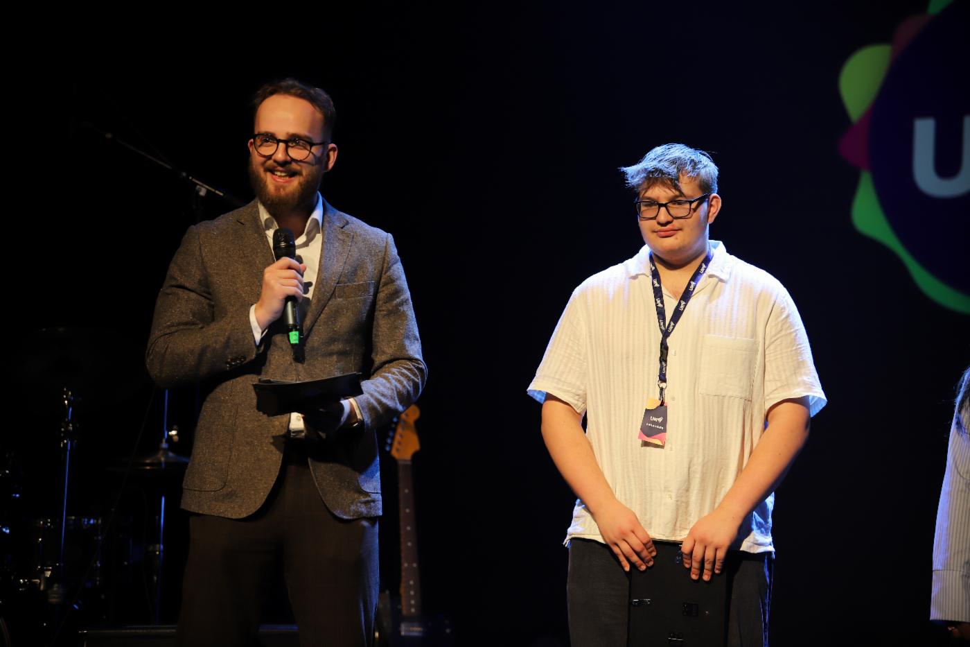 Byråd Reidar Digranes deler ut Ungdomsprisen for 2024 til Andreas Ilsen (17).