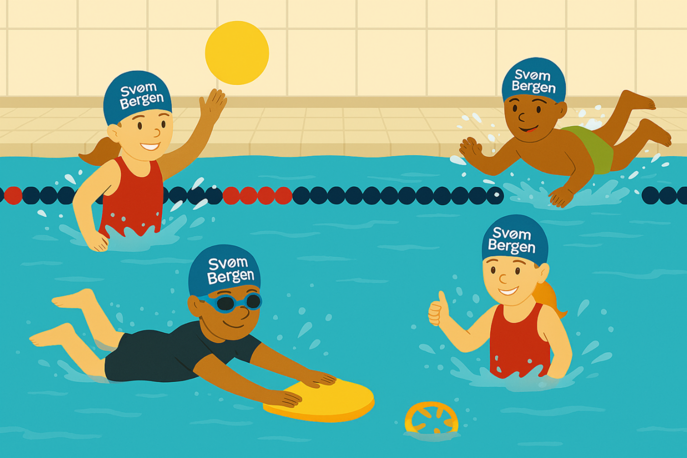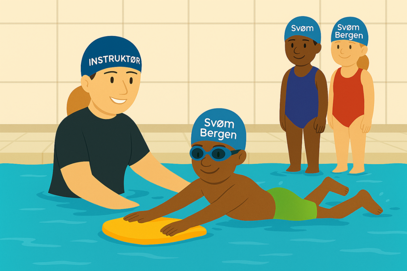 Svømmeopplæringen er lagt opp slik at alle barn kan oppleve mestring og utvikle seg videre fra sitt eget nivå.
