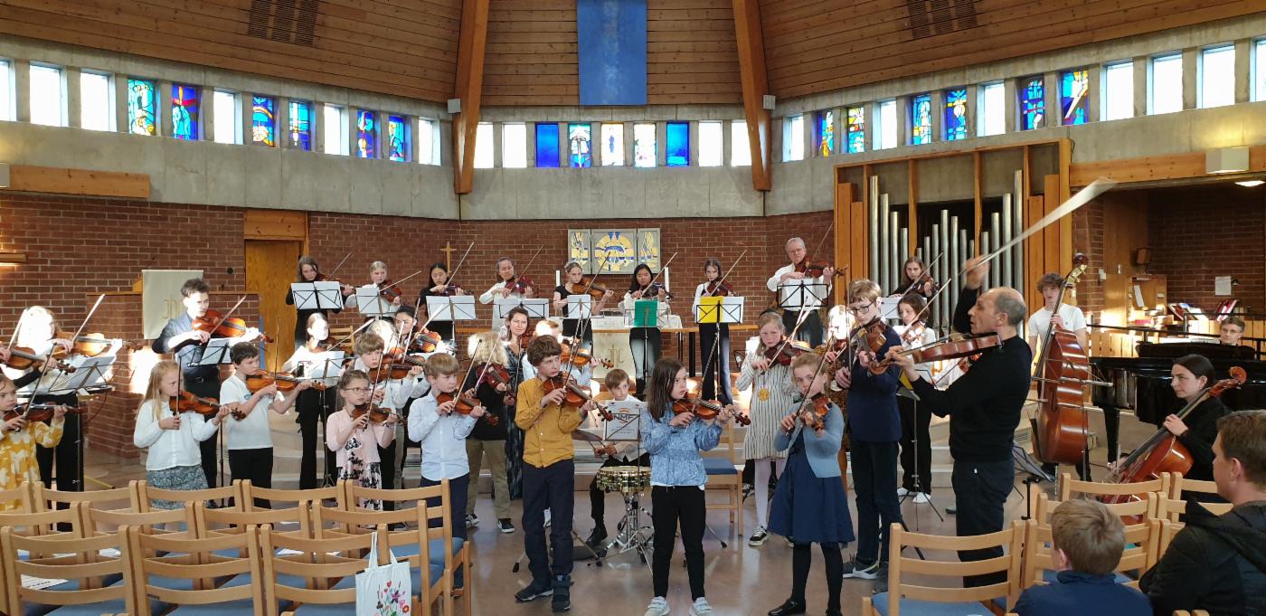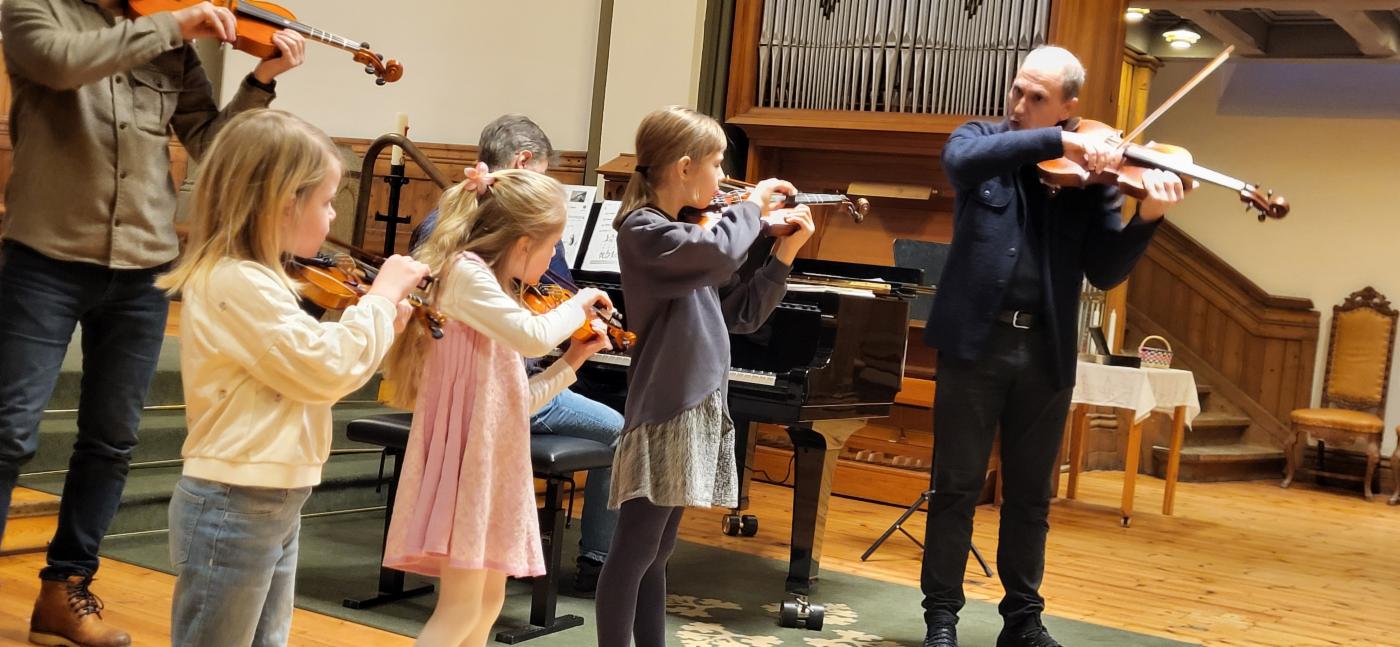 "Musikk i sentrum" fiolin. Lekebasert undervisningopplegg for barn fra 3 - 6 år. Basert på Suzukimetoden. Barn og foreldre deltar på spilletime to ganger i uken; gruppetime og individuell time. Starter med et 6 ukers foreldrekurs. Foreldre må være tilstede på undervisningstimene. Storgruppetimene for fiolinistene vil være i mandager Strømgt 19, individuell time på annen ukedag/sted.