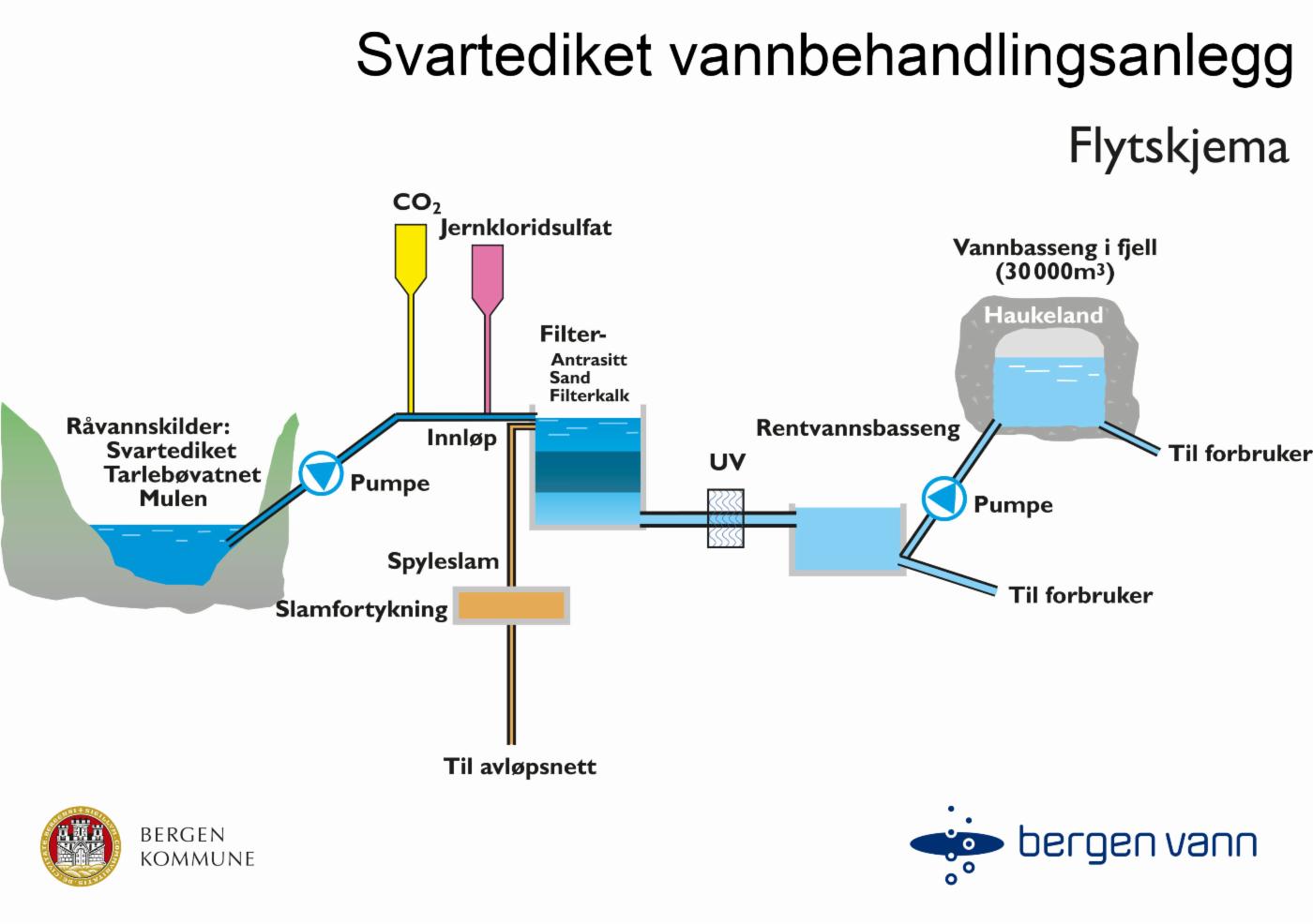 For Bergen kommune produseres det årlig ca 37 mill m3 drikkevann i følgende vannbehandlingsanlegg: