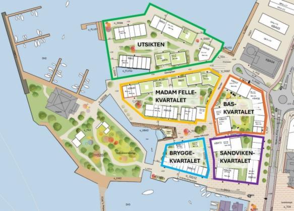Den foreslåtte nye bebyggelsen vil inneholde boliger, barnehage, dagligvare, service og næringsvirksomhet. De verneverdige sjøbodene og bebyggelsen i grendene skal bevares som kulturmiljø. I planforslaget ligger det også nye torg og gater som kobler seg på den eksisterende strukturen i området. Sandvikstorget skal styrkes som sentralt byrom og være et bindeledd mellom fjord og fjell.
