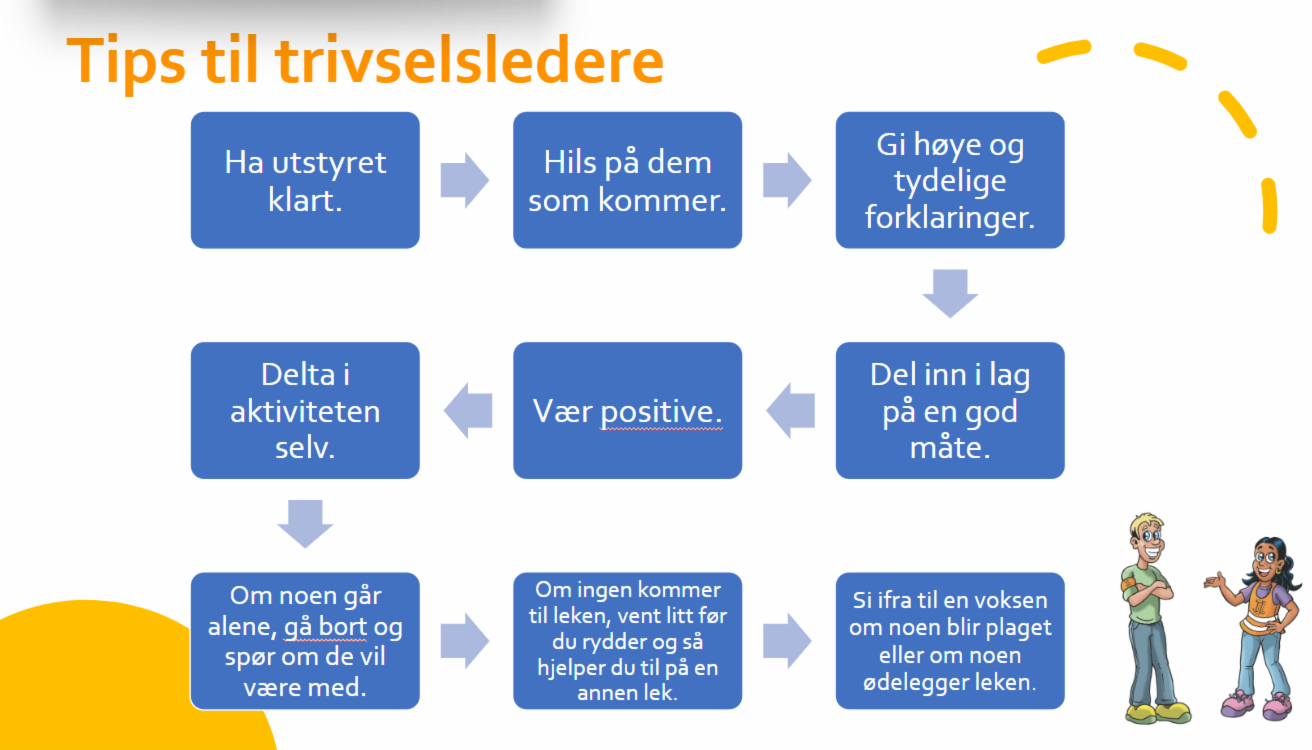 - På møtene er trivselslederne med på å lage planer over hvilke leker og aktiviteter som skal arrangeres.