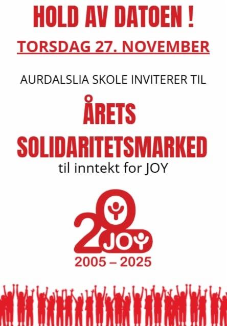 Høsten har kommet, og det er ikke lenge til vi skal arrangere høstmarked til inntekt for JOY. Sett av datoen torsdag 27.november klokken 16.30 - 19.30. Mer informasjon kommer!