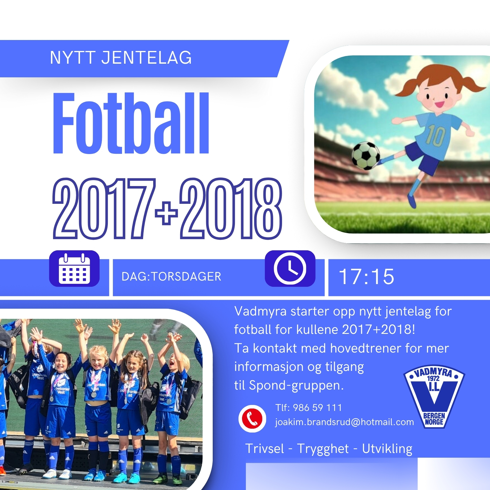 Nytt jentelag er opprettet i Vadmyra for dem som er født i 2017 eller 2018.