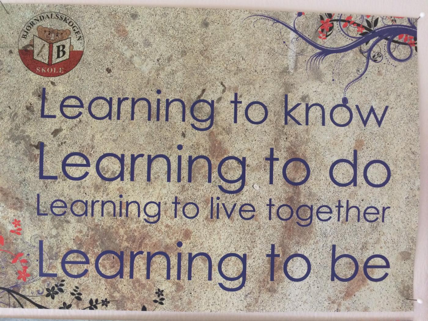 Vi lærer hele tiden - overalt. Skolen vår er en spesiell arbeidsplass for læring. Vi er der for å jobbe og har klare forventninger til hverandre om å jobbe hardt og bidra til et godt arbeidsfellesskap slik at alle de andre også kan lære og utvikle seg best mulig.