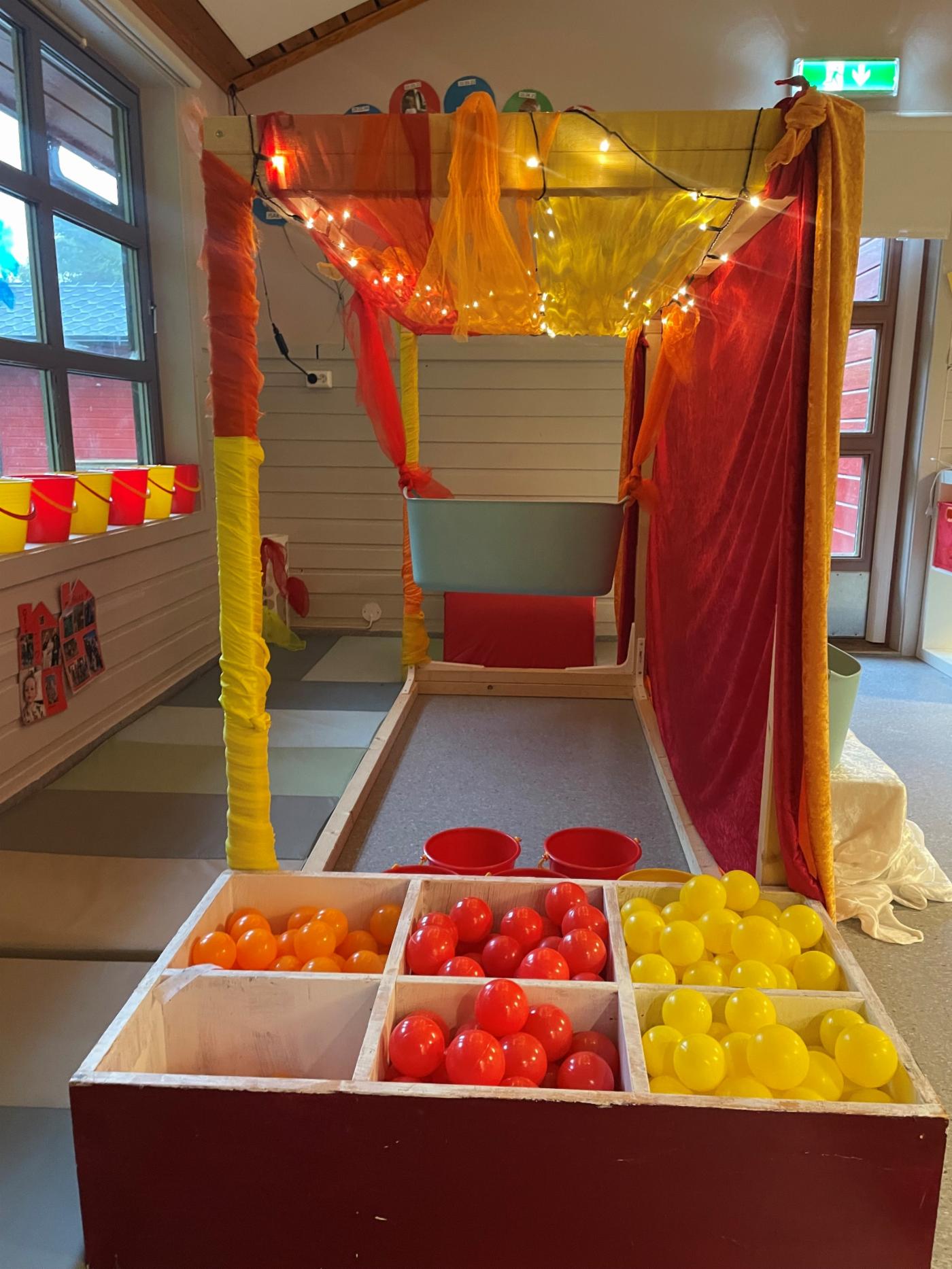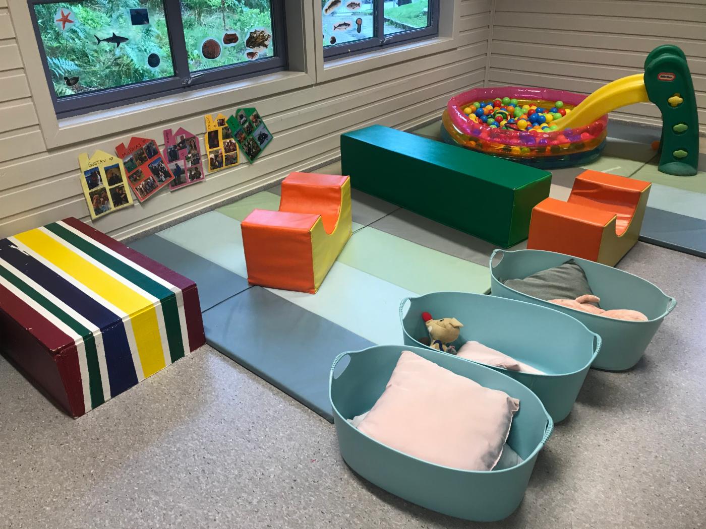 På småbarnsavdelingene legge de til rette for tumling og utforsking av ulike materialer og farger.