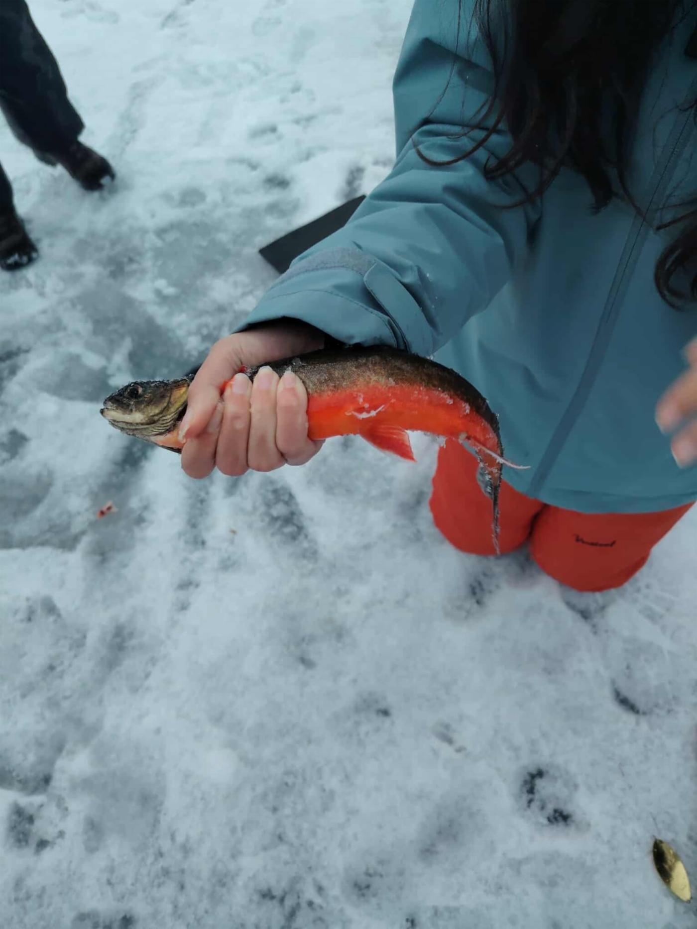 Onsdag ettermiddag fekk alle elevane prøvd seg på isfiske på Vengsvatnet. Elevgruppa blei delt i tre og kunnskap om isvett og isfiske blei både formidla og praktisert.