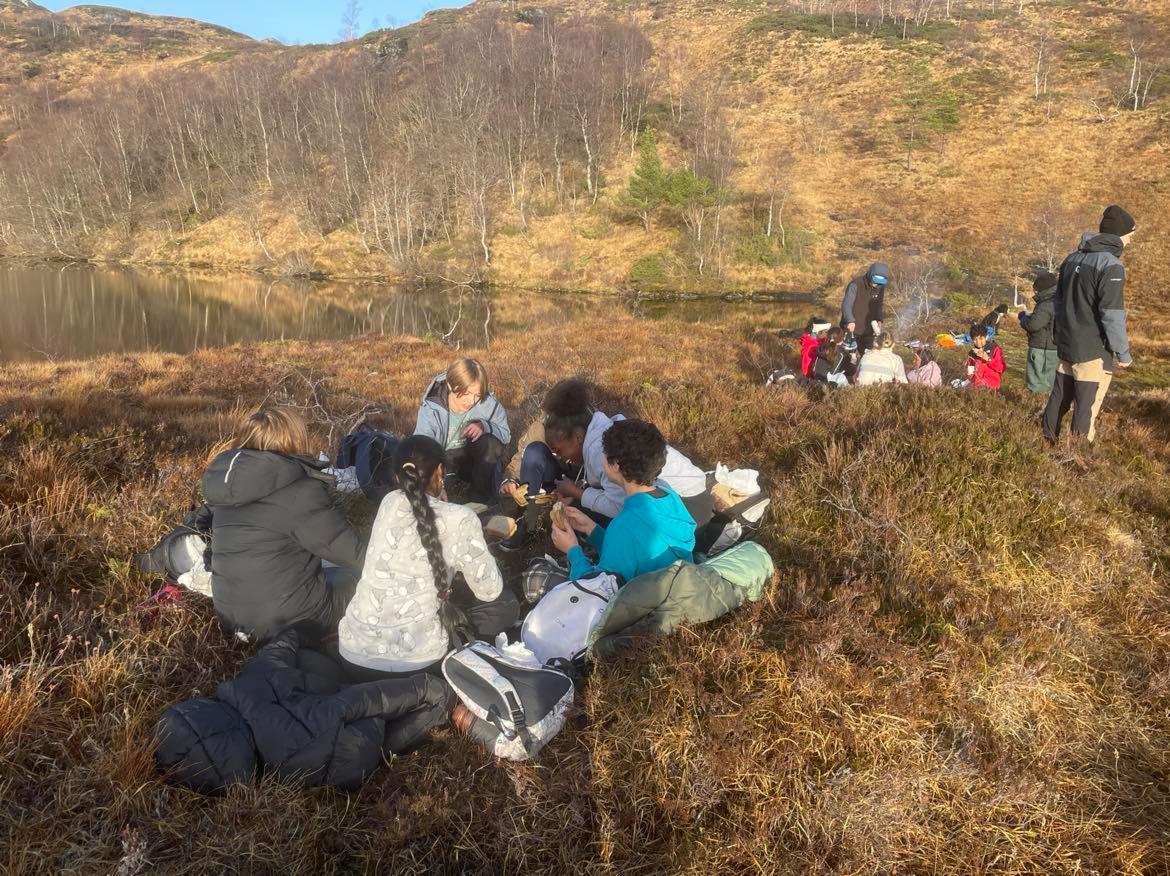 Men ikkje minst har me gjennomført ei heil rekkje av ulike undervisningsaktivitetar. Tysdag var «rigga» for ein dag på vatn. Ei gruppe gjennomførte årets siste tur til Kikedalen for leirskuleelevar. Tematikken var, nok ein gong, busetnad i dalen og leiting etter bevis for korleis is(tider) og rennande vatn har forma landskapet.
