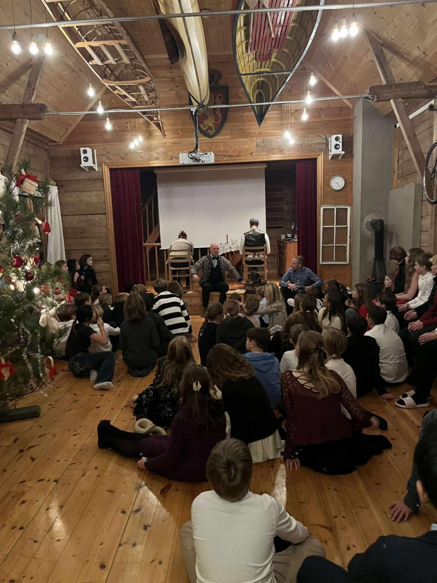 Elles gjennom veka har elevane blitt kjent med kvarandre - på tvers av skular. Me har vore i skogen og laga bål og henta heim juletre. Det har blitt utført “julebad” på vesle julaftan (onsdag).