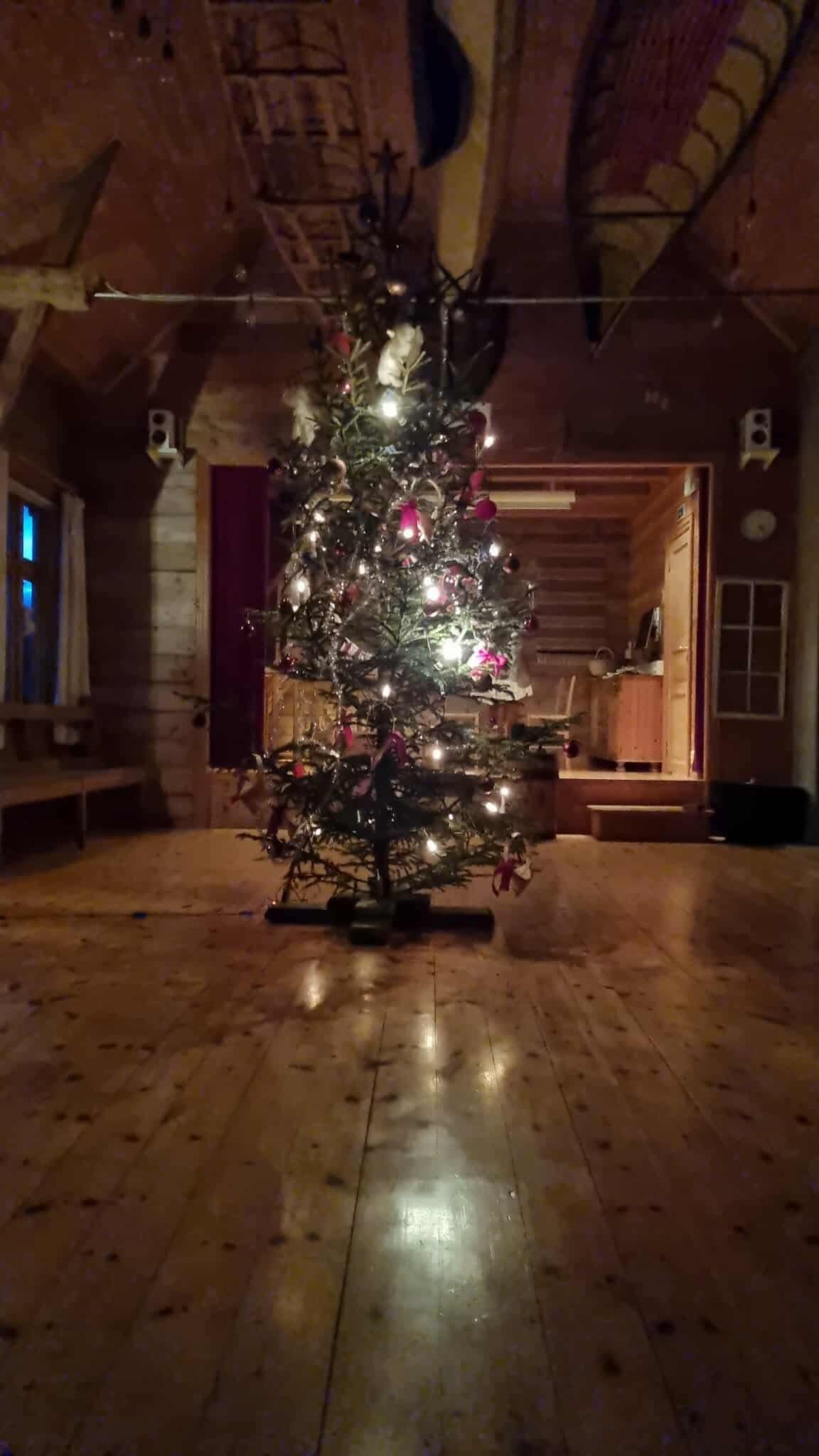 Etter ein høgtidsmiddag med både mat, talar og song flyttar feiringa seg til ungdomshuset der fokuset er flytta over til mellom anna juletregong, julesongar og symbolikken rundt julepresangar.