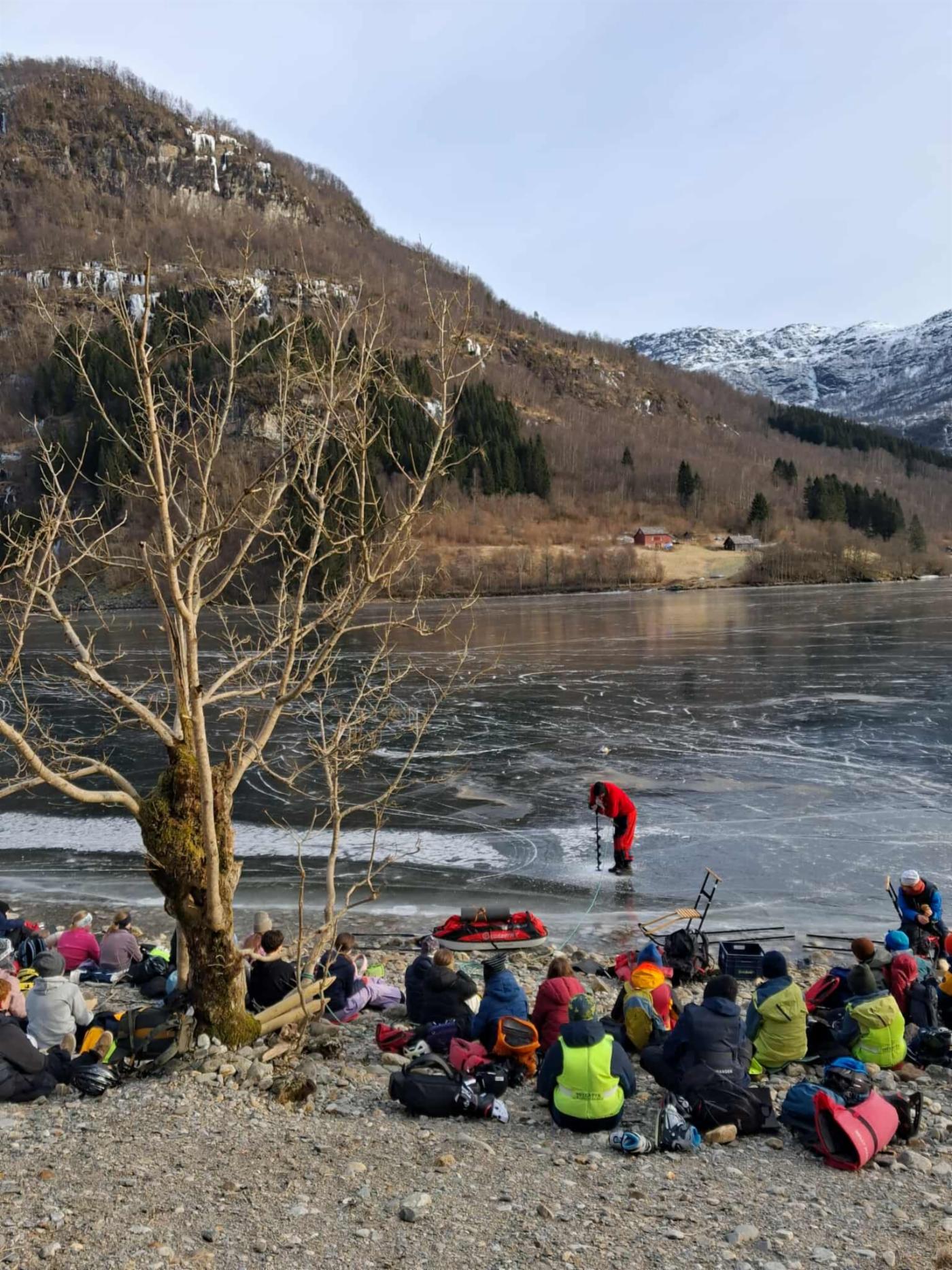 Onsdag ettermiddag var mange elevar på Vengsvatnet og prøvde seg på isfiske, medan resten nytta ettermiddagen utandørs til å lage mat på bål.