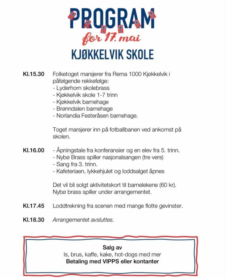 Her kan du se hva som skjer på Kjøkkelvik skole på 17. mai.