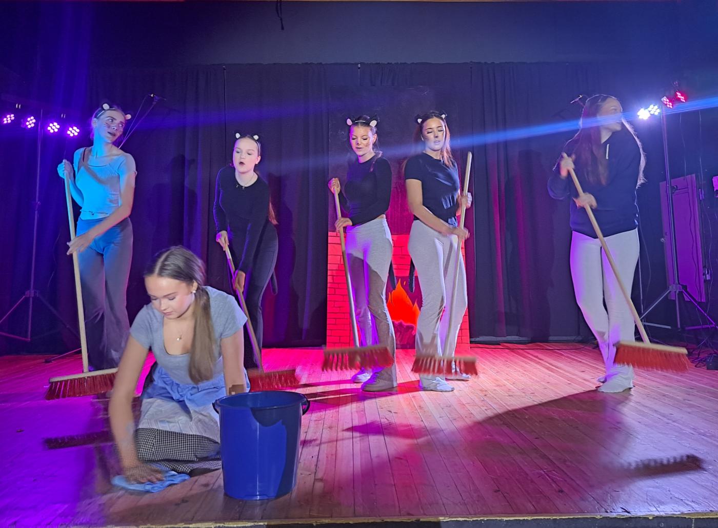 18.04 var barnetrinnet på Kyrkjekrinsen invitert til gymsalen for å se forestillingen "Askepott". Ungdomsskoleelevene på Valgfaget "Produksjon for sal og scene" imponerte stort, og fikk trampeklapp!