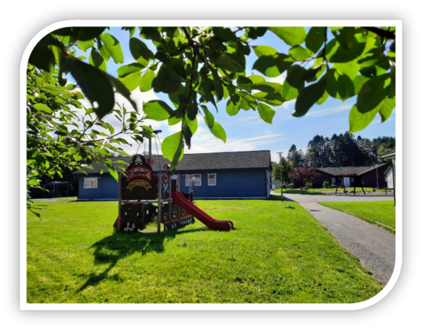Vi har et fint uteområde med ballbinge og lekeapparater som benyttes på ettermiddager og i helger.