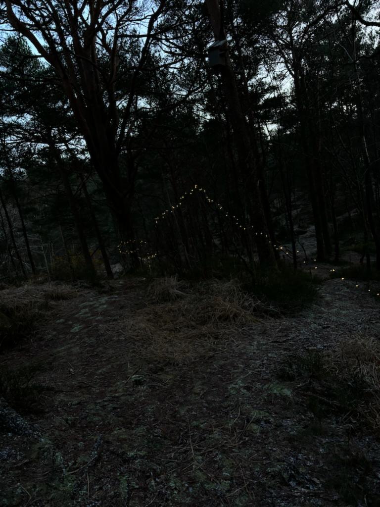 Vi pyntet skogen med lyslenker så alle skulle finne veien til samlingsstedet.