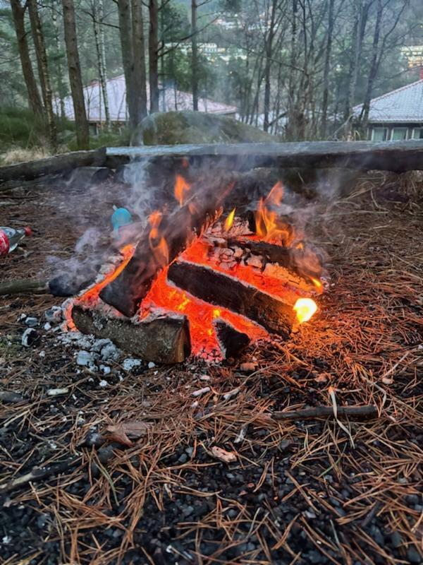 Vi samlet oss rundt bålet der vi sang sanger som: Lille Petter edderkopp, hjulene på bussen, bæ bæ lille lam og pawpatrol.