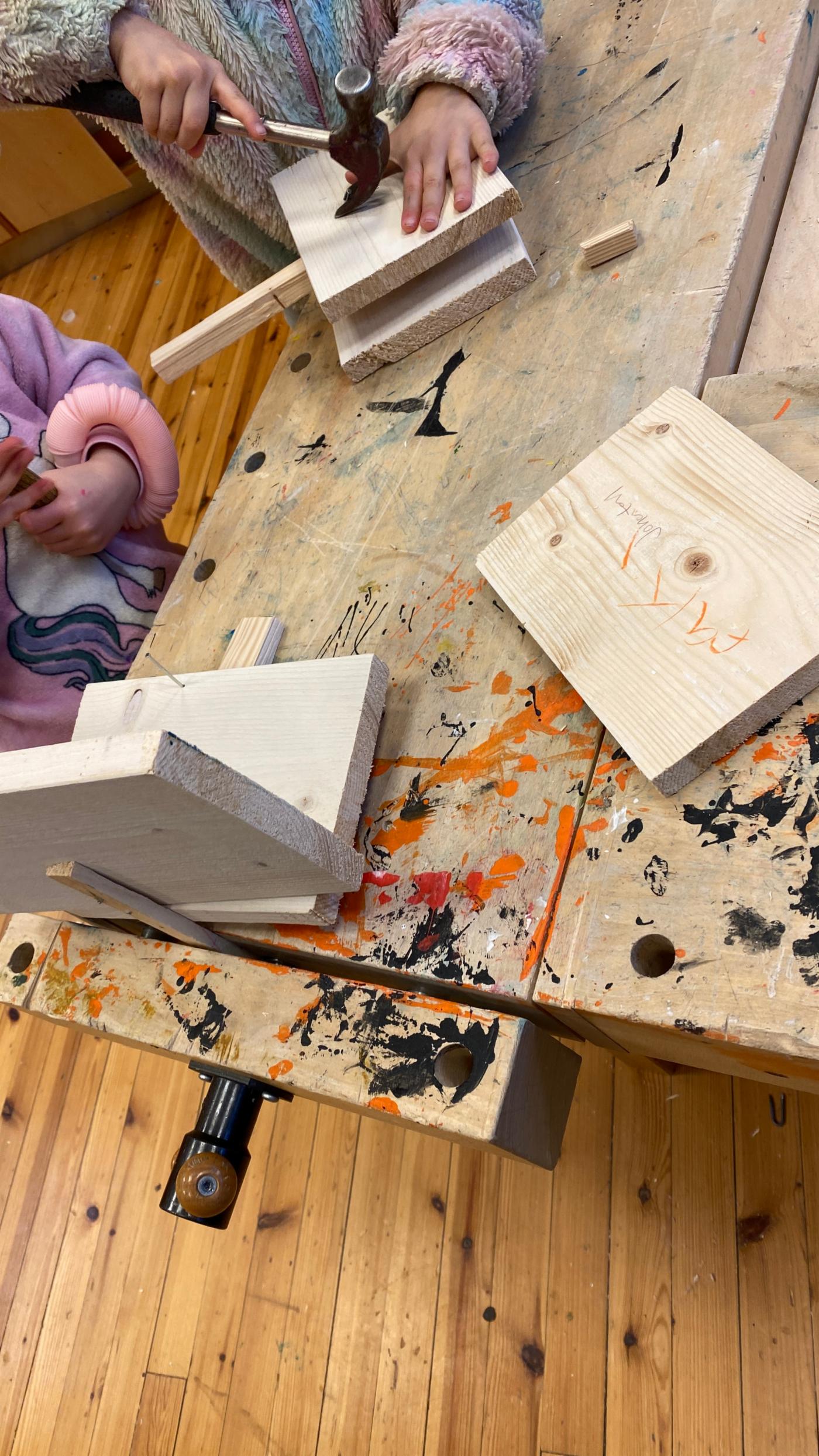 Her kan du se hva vi holdt på med av ulike aktiviteter i vinterferien på SFO ! Vi var i skogen med bål og grillet pølser og marshmallows . Vi var på sløyden og laget båter og hus.