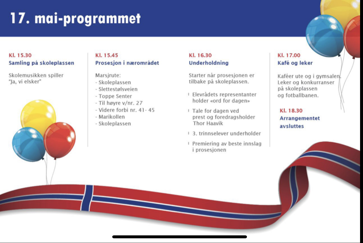 Vedlagt program for 17.mai på Mjølkeråen skole! Vi ønsker alle en flott feiring!