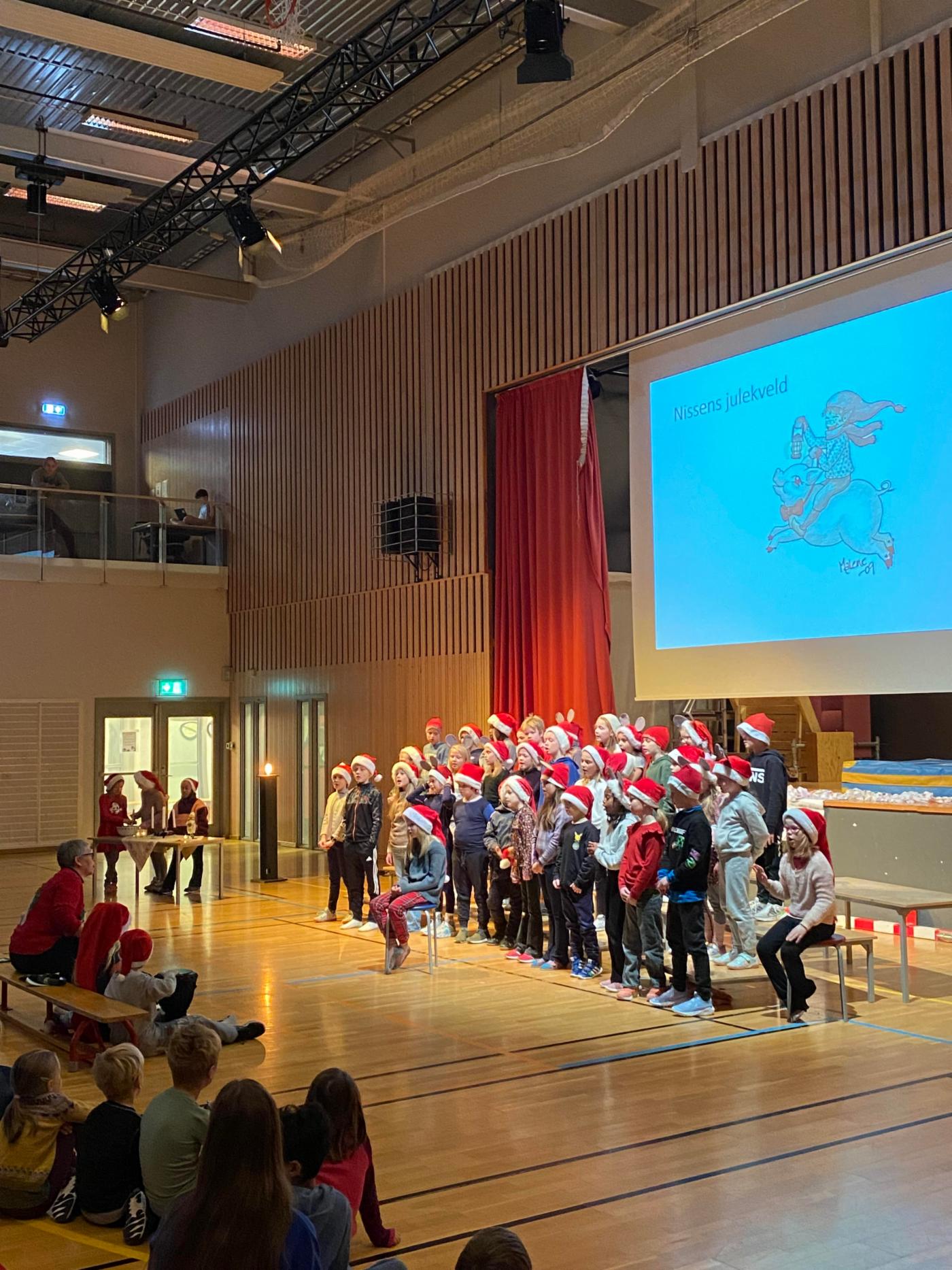 Vi har hatt en fin og innholdsrik adventstid på skolen med samlinger, juleverksted, kanonballturnering og åpen ettermiddag hvor foresatte ble invitert til skolen for å se på læringsarbeid og innslag fra trinnene. 6.trinn hadde ansvaret for bevertningen og hadde laget flotte kiosker i den fine hallen vår. Det ble samlet inn 23282 kroner til Nyenga, i tillegg var det godt salg i boden til Nyenga -stiftelsen.