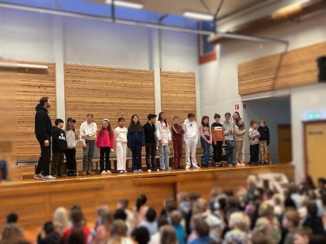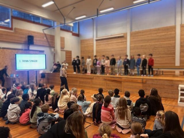 Vintersamlingen i gymsalen fredag 23.01.26 ble en fin stund for både elever og ansatte. 5. trinn sto for hovedansvaret og ledet samlingen på en fin og god måte.