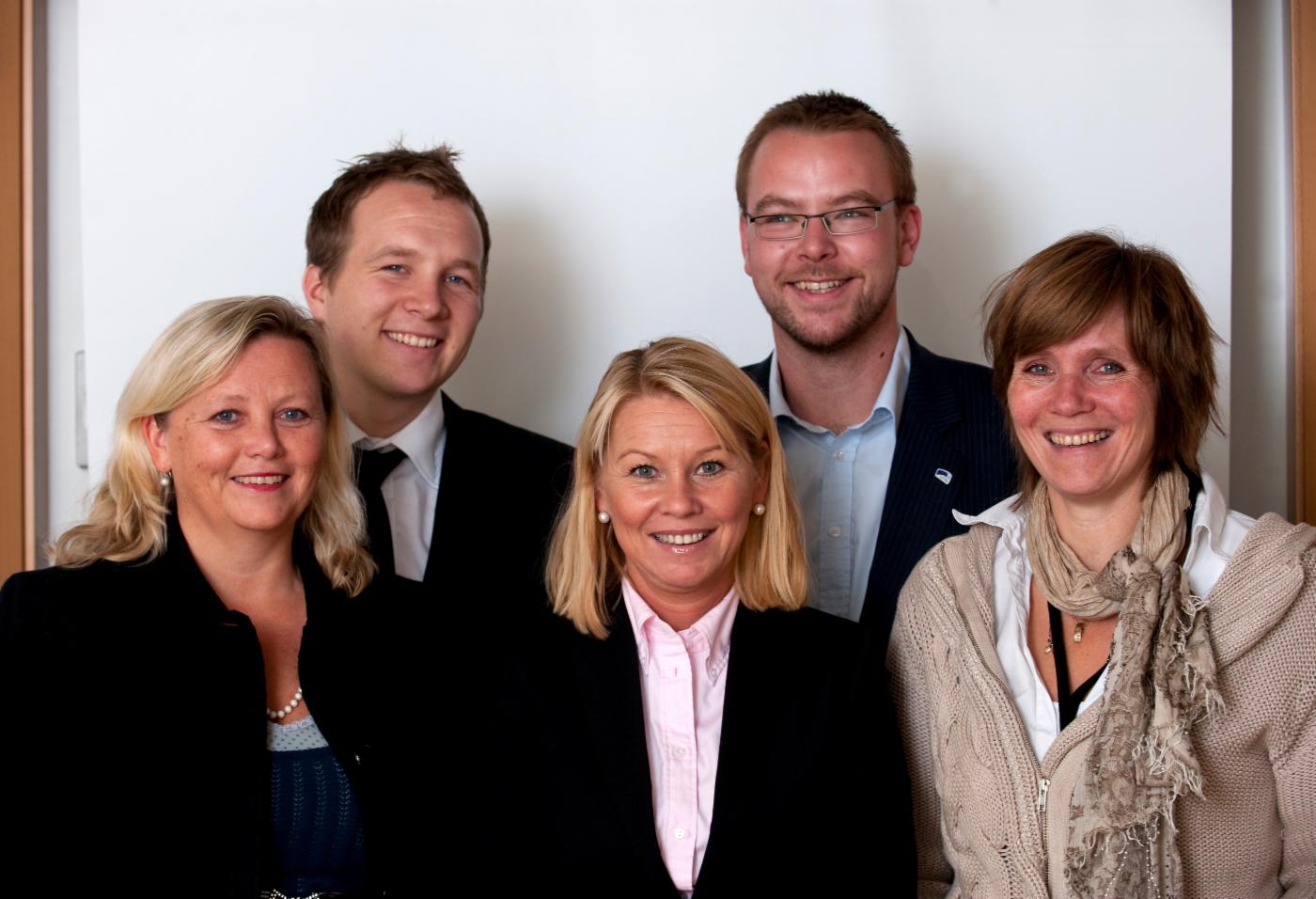 Fra venstre Lisbeth Iversen, Filip Rygg, Monica Mæland, Harald Victor Hove og Christine B. Meyer