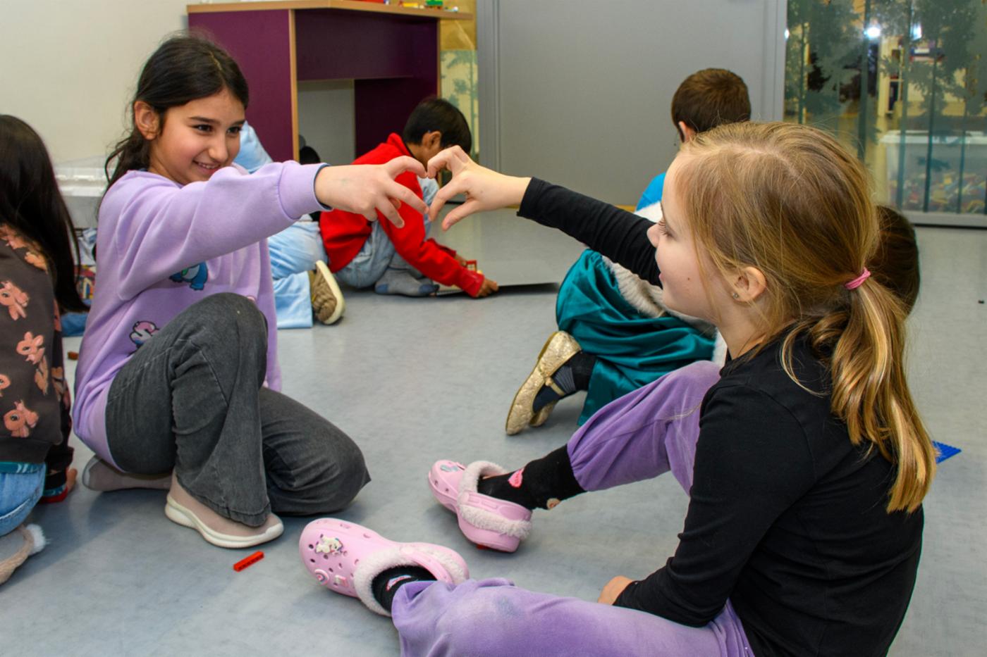 Elever som sitter på gulvet